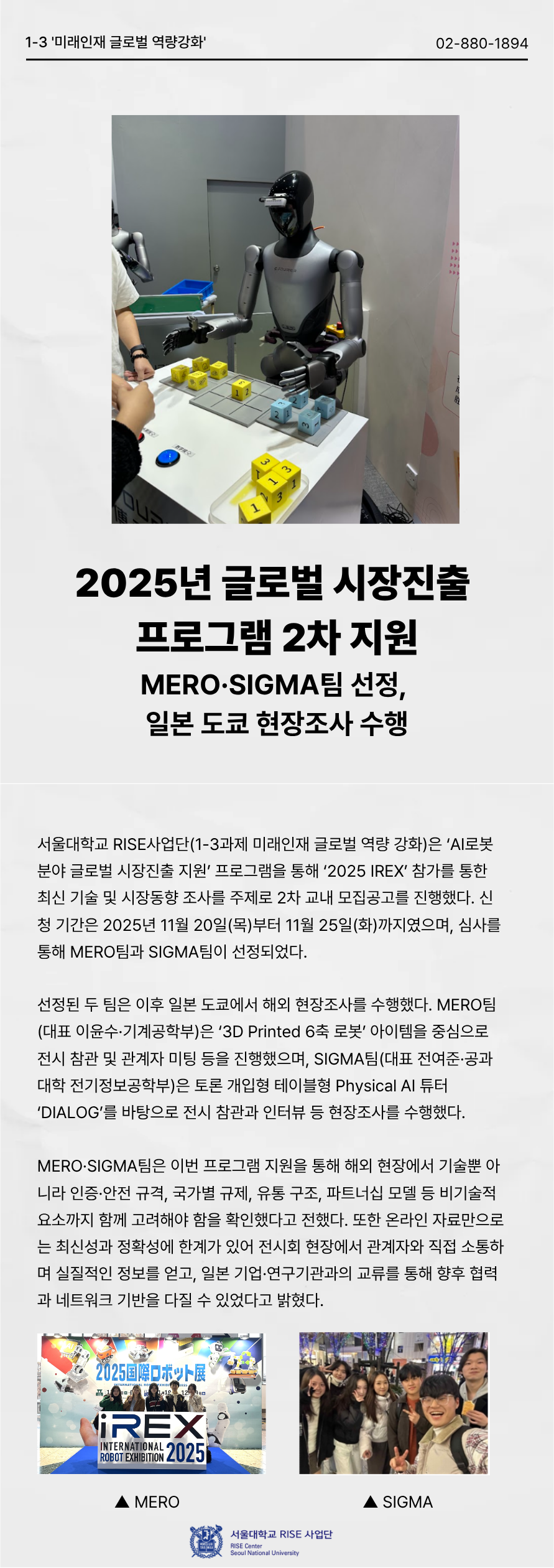 [3세부] ‘글로벌 시장진출 지원(2차)’… MERO·SIGMA팀 선정, 일본 도쿄 현장조사 수행